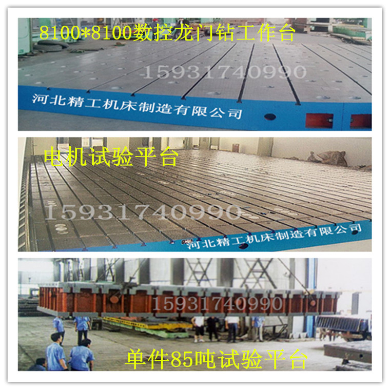 我公司根據(jù)客戶不同需求,生產(chǎn)了不同用途的鑄鐵平臺。有用于工件焊接檢測用的焊接平板、鉚焊平板、三坐標平臺;有用于零件劃線研磨加工用的劃線平板、研磨平板、刮研平板;有用于設備安裝調(diào)配用的裝配平板、基礎平板、T型槽平板、鉗工平板、火工平板;有用于檢驗工作精密測量基準的檢驗平板、圓形平板、試驗平板、電機試驗平臺;有用于機床加工用的落地鏜床工作臺、落地銑床工作臺、水槽工作臺等等。