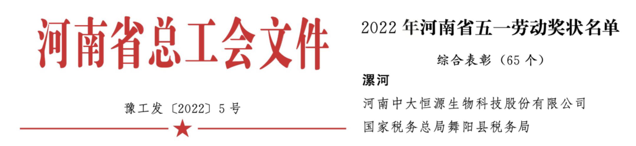 中大恒源喜獲“河南省五一勞動獎狀”殊榮