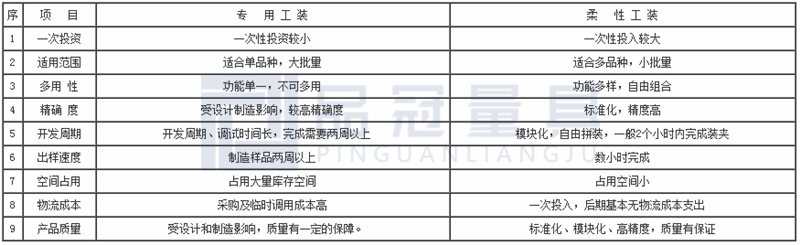 專用工裝和柔性工裝的對(duì)比表